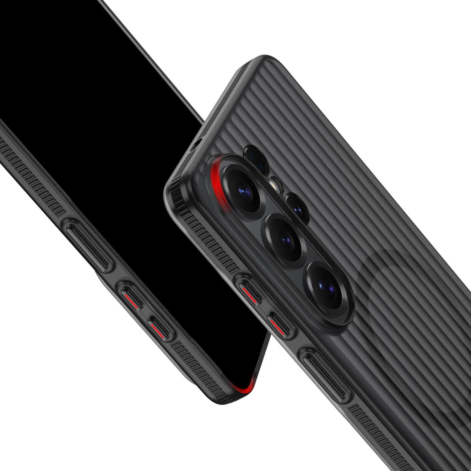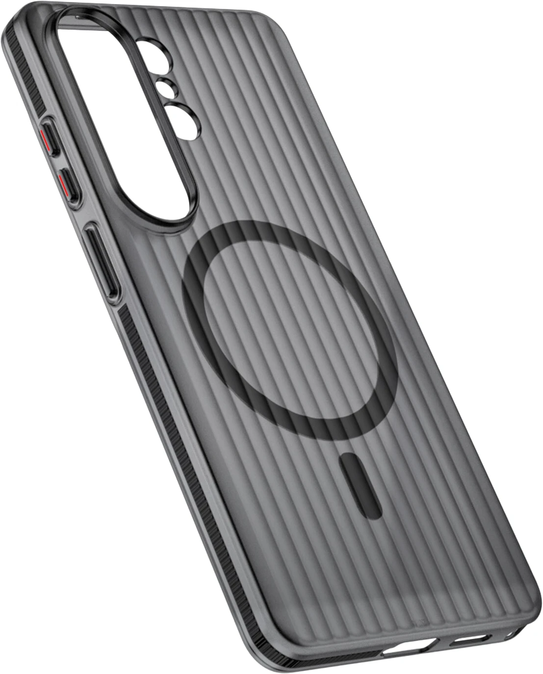 Das 4smarts Aero Riffel-Design Case für Samsung Galaxy S26 Ultra kombiniert minimalistisches Design mit hochwertiger Funktionalität – inspiriert vom ikonischen Look edler Aluminium-Reisekoffer.