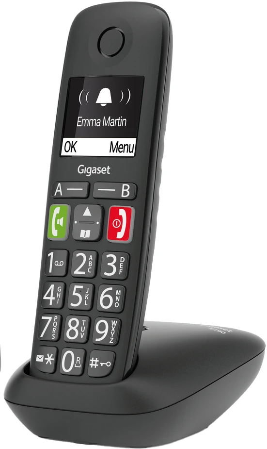 Das einfache Wählen einer Telefonnummer ist der Auftakt zu einem angenehmen Telefonerlebnis. Genau deswegen macht die ergonomische Tastatur des Großtastentelefons Gigaset E290 die Bedienung jetzt so komfortabel wie möglich: Große, beleuchtete sowie deutlich beschriftete Tasten sorgen für gute Lesbarkeit. Besonders wichtige Kontakte, zum Beispiel für den Notfall, können Sie auf einer der beiden Zielwahltasten A / B einspeichern. Wenn von dem Telefon aus nur eine Rufnummer angewählt werden soll, ist die Direktruf-Funktion hilfreich. In schwierigen Situationen reicht das Drücken einer beliebigen Taste um eine vorab hinterlegte Telefonnummer zu aktivieren.